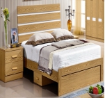(1)贴面用材:采用优质防火E1级三聚氰胺板贴面;(2)封边用材:同色封边;(3)五金配件:优质五金配件,均经过酸洗、磷洗等防锈处理。台面、小柜顶板台脚厚度:2.5厘米,其部分1.6厘米。床头柜1个