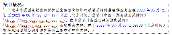 1、采购项目名称:湖南小溪国家级自然保护区宣传教育标识牌项目