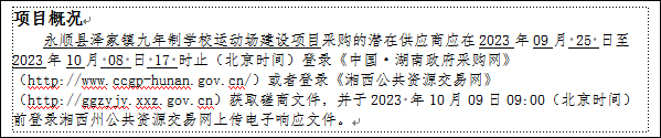 1、采购项目名称:永顺县泽家镇九年制学校运动场建设项目