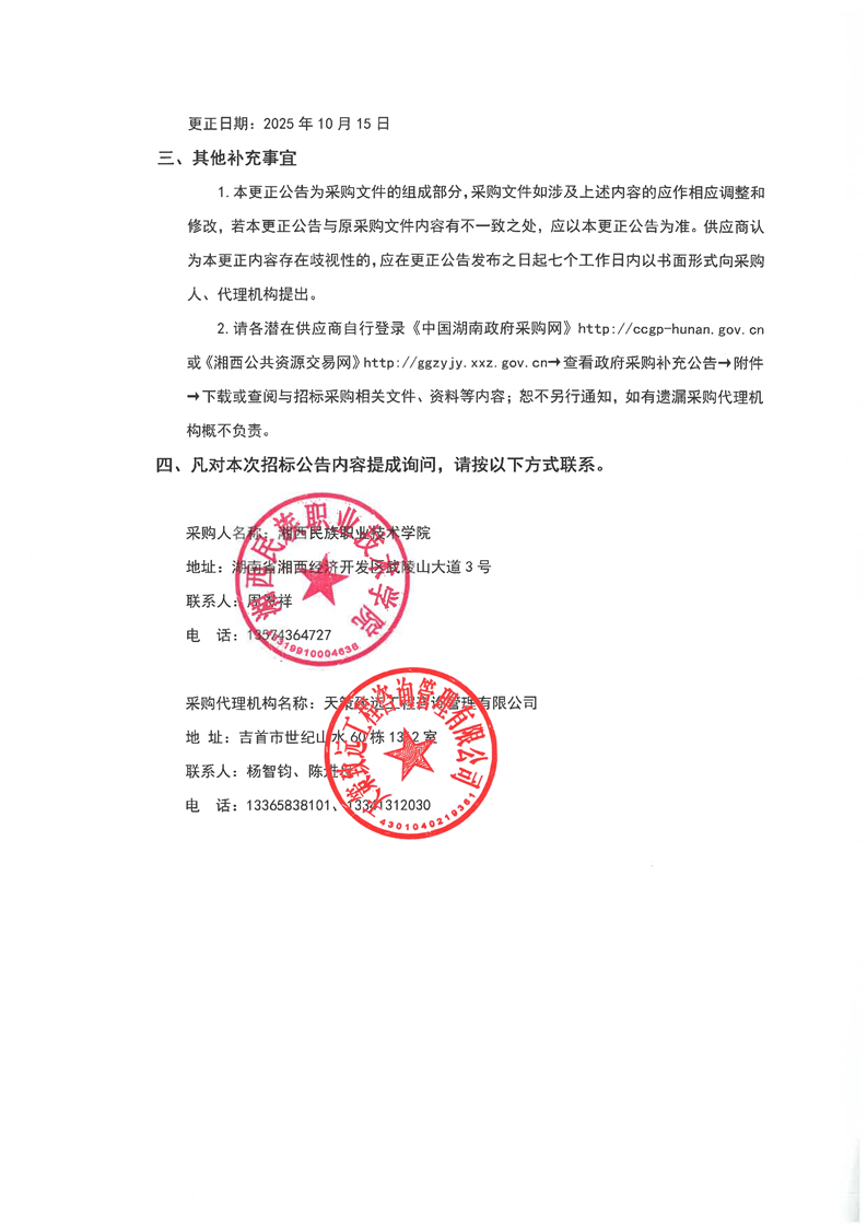 湘西民族职业技术学院2025年增材制造实训室项目招标公告[变更公告]