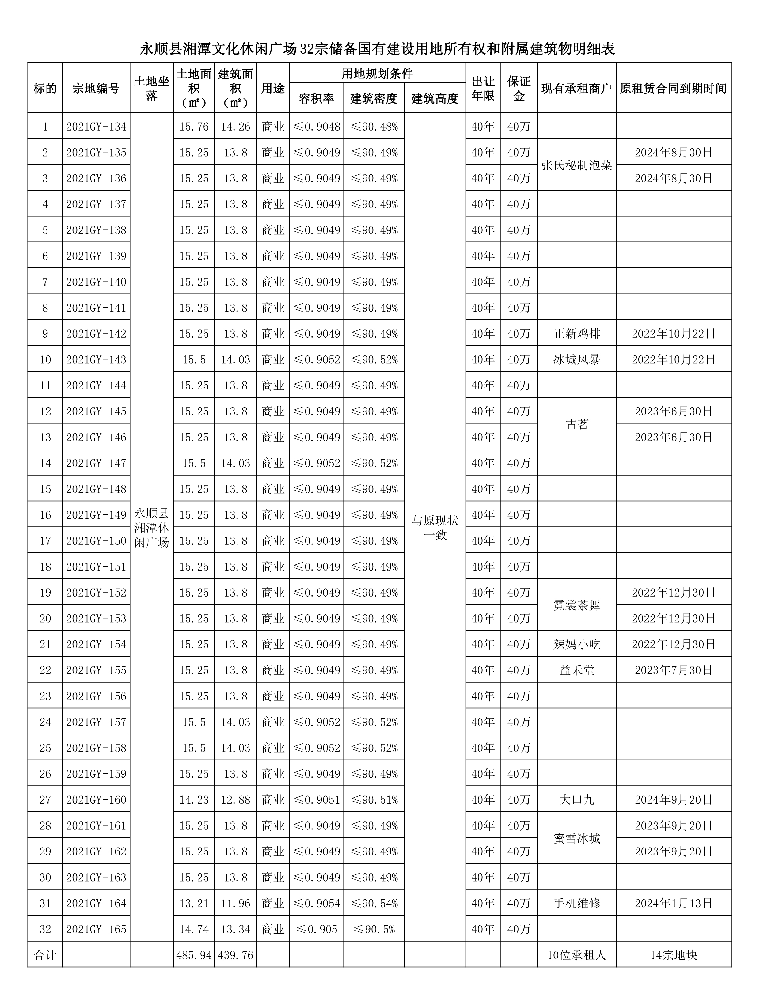 永顺县湘潭文化休闲广场32宗储备国有建设用地使用权和附属建筑物拍卖公告