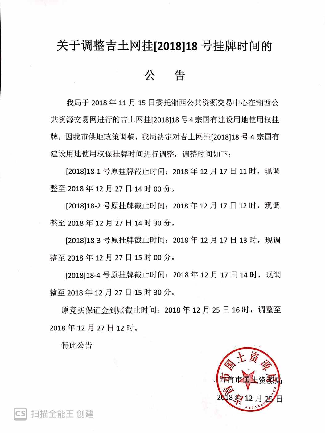 吉土网挂[2018]18-2号(变更公告)