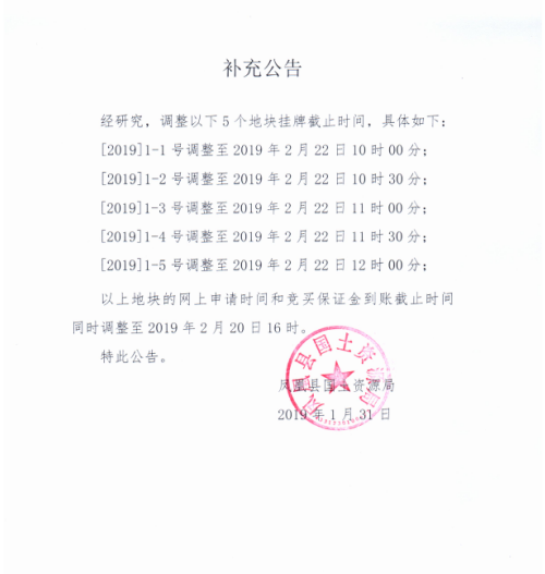 凤凰县国土资源局[2019]1-1号地块国有建设用地使用权(变更公告)