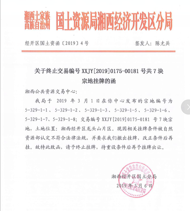 湘西经济开发区管委会(5-329-1-8)地块国有建设用地使用权(变更公告)