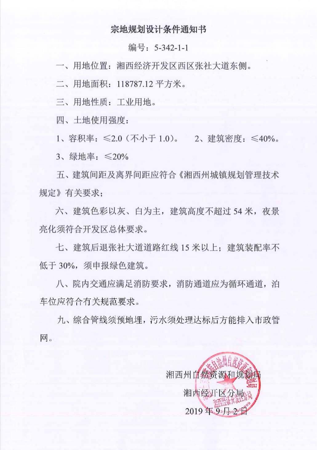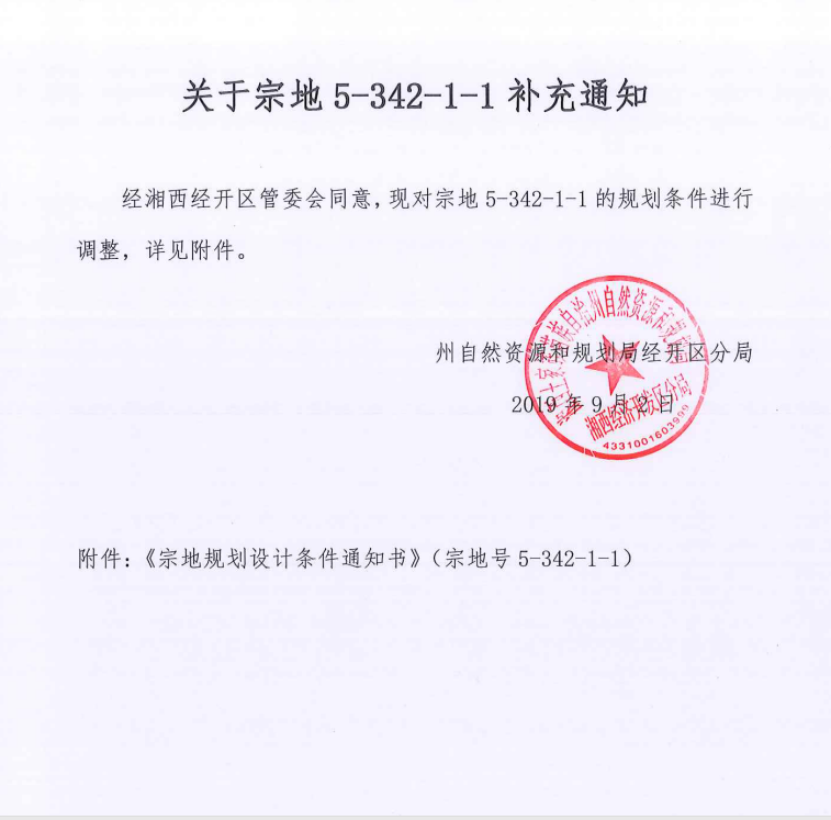湘西经济开发区管委会(5-342-1-1)地块国有建设用地使用权(变更公告)
