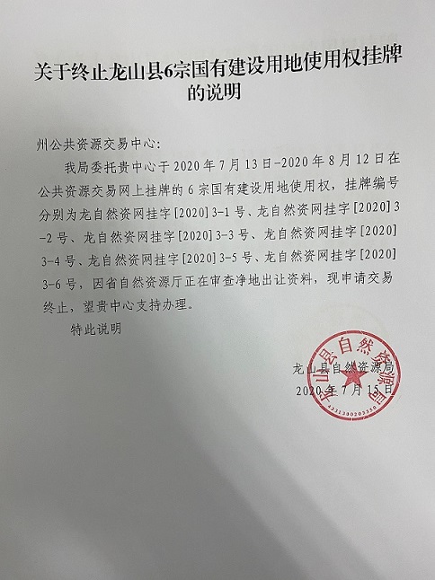 龙山县2020-3-6号国有建设用地使用权(终止公告)