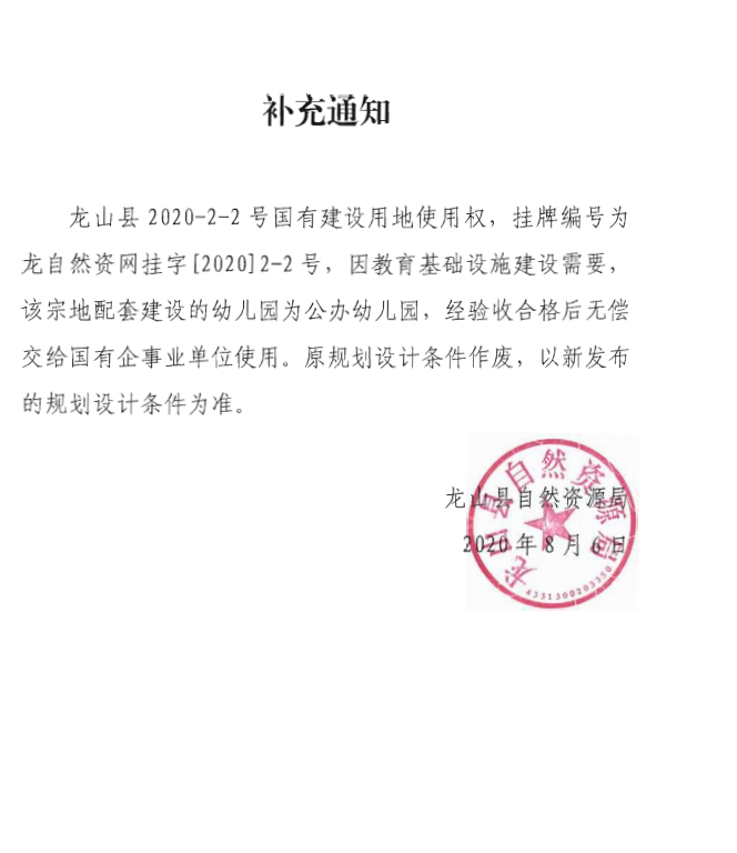 龙山县2020-2-2号国有建设用地使用权(补充通知)