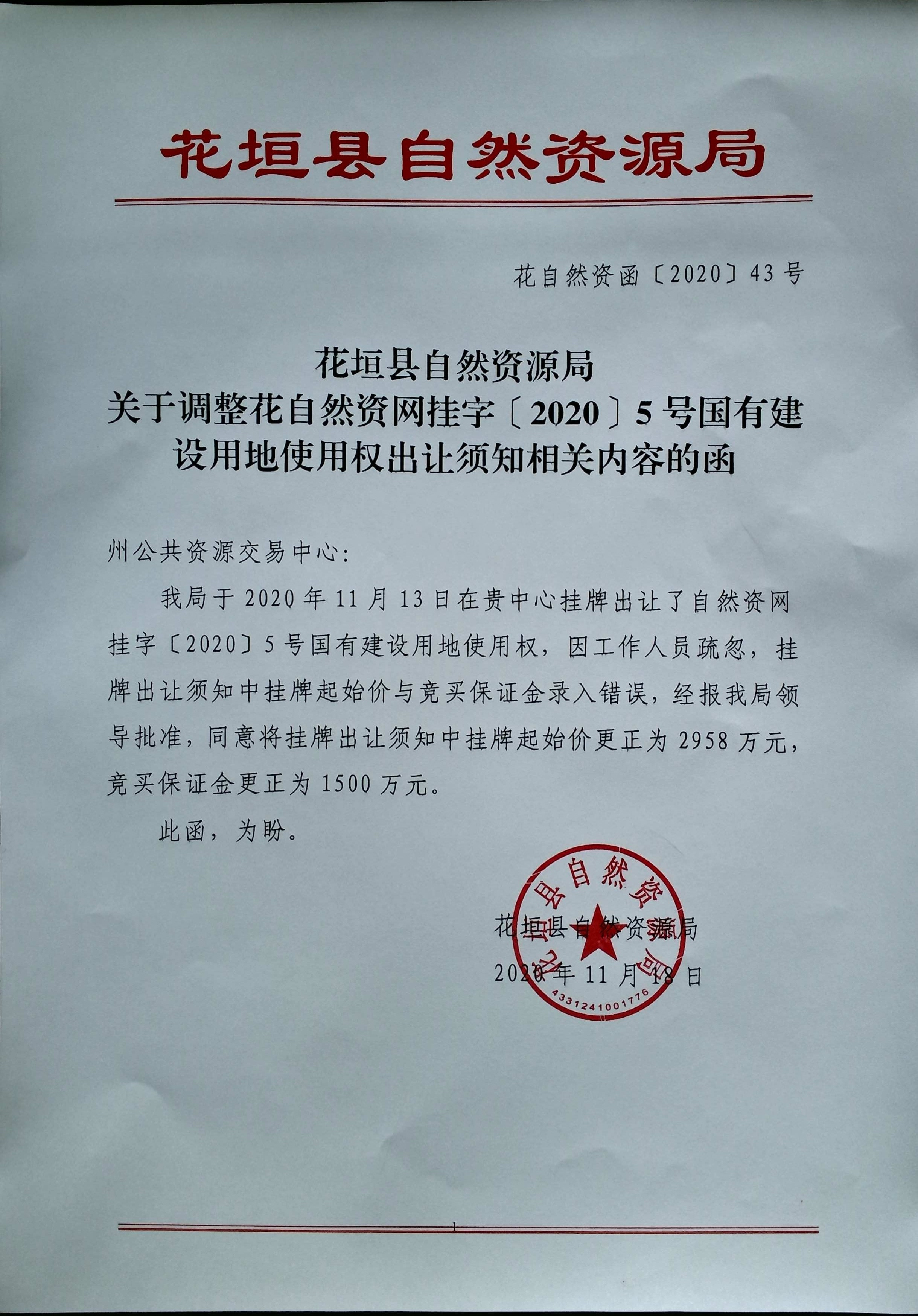 花垣县2020G-171号地块国有建设用地使用权(变更公告)