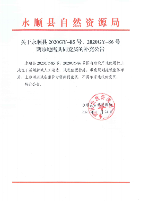 永顺县2020GY-86号国有建设用地使用权(补充公告)