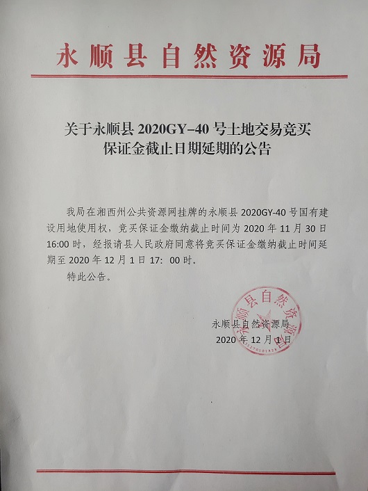 永顺县2020GY-40号国有建设用地使用权(延期公告)