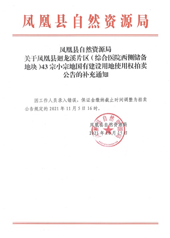 凤凰县廻龙溪片区(综合医院西侧储备地块)43宗小宗地国有建设用地使用权(补充公告)