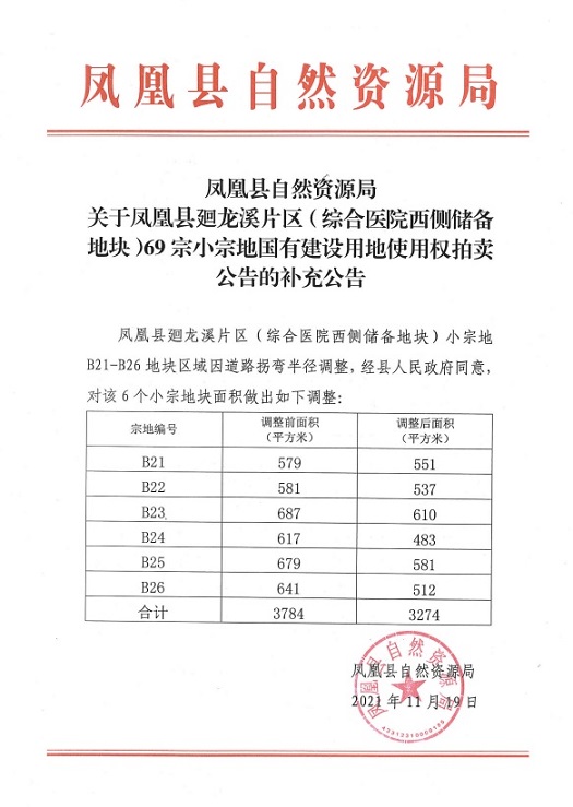 凤凰县廻龙溪片区(综合医院西侧储备地块)69宗小宗地国有建设用地使用权(补充公告)