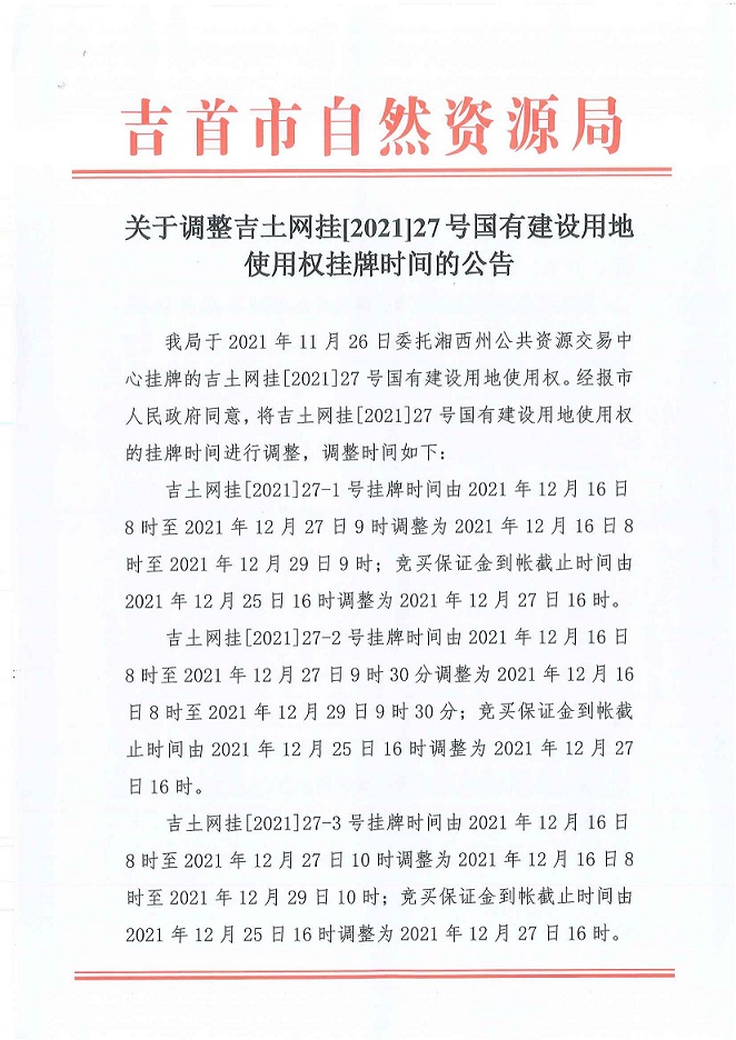 吉土网挂[2021]27-9号(延期公告)
