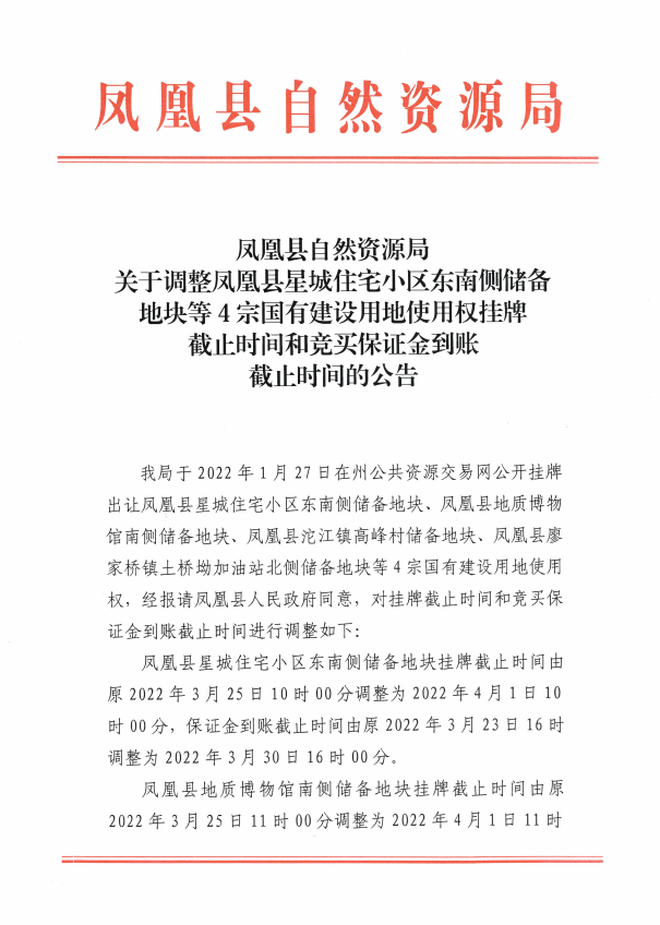 凤凰县廖家桥镇土桥坳加油站北侧储备地块国有建设用地使用权(延期公告)
