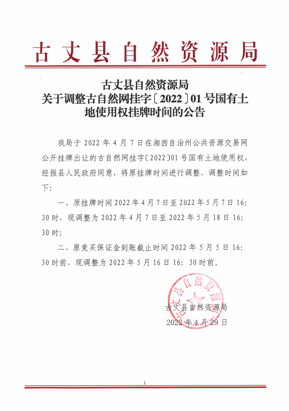 关于调整古自然网挂字〔2022〕01号国有土地使用权挂牌时间的公告.pdf