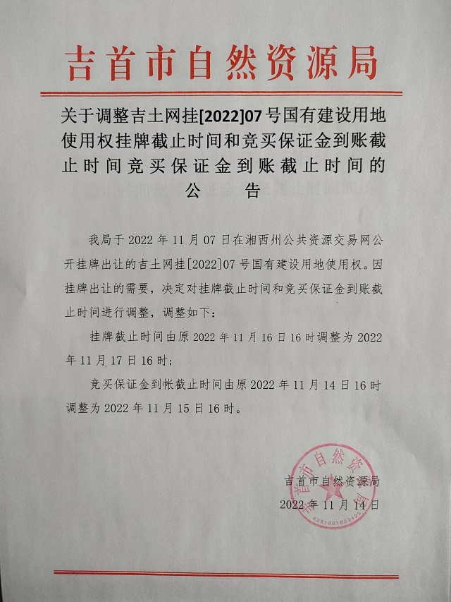吉土网挂[2022]07号(延期公告)